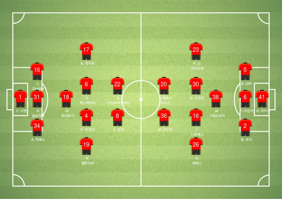 - ub2e4ub2c8uc5d8 ud074ub77cuc778: 중원에서의 안정감을 제공하며, 볼 배급 능력이 팀의 핵심입니다.