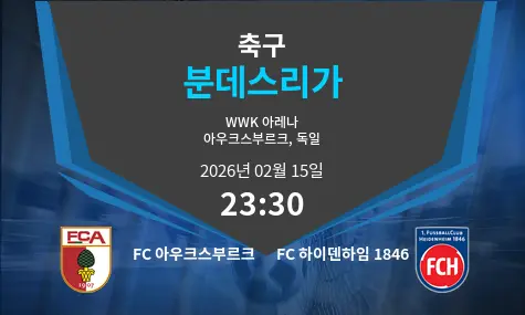 FC 아우크스부르크와 FC 하이덴하임 1846의 매치가 2026년 2월 15일 WWK Arena에서 열릴 예정입니다. 경기는 23:30에 시작됩니다. 양 팀 모두 강한 경기력을 보유하고 있으며, 이번 맞대결은 팬들의 기대를 모으고 있습니다.
