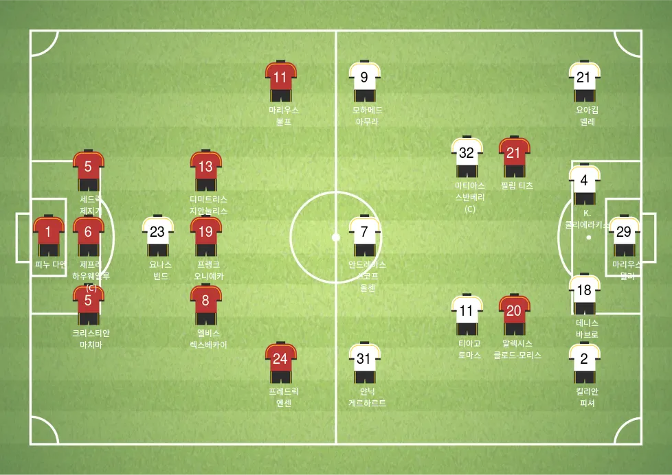 - 모하메드 아모우라(윙어) – 스피드와 드리블 능력을 갖추고 있어, 개인기로 수비진을 뚫을 수 있습니다.