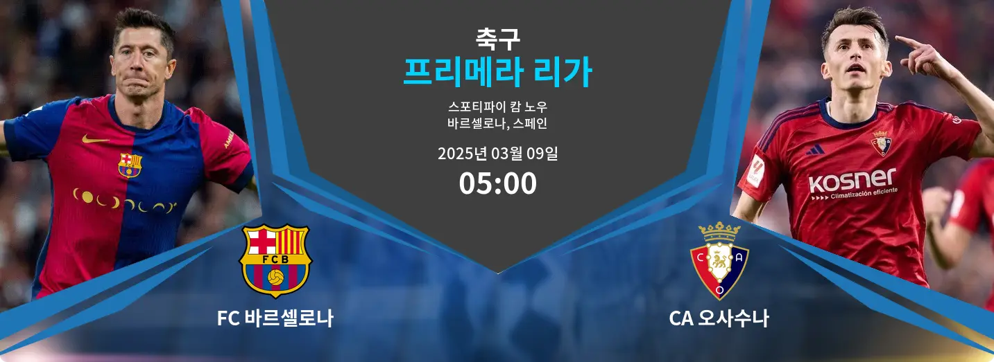 FC 바르셀로나는 스포티파이 캄 노우에서 CA 오사수나와 라리가 2024/25 시즌 경기를 치른다. 현재 리그 1위인 바르셀로나는 26경기에서 71골을 넣으며 강력한 공격력을 보여주고 있다. 반면, 11위 오사수나는 37실점을 기록하며 수비에 어려움을 겪고 있다. 올 시즌 맞대결에서 바르셀로나는 오사수나를 1-0, 2-0으로 제압하며 무실점 승리를 거뒀다. 바르셀로나의 화력과 오사수나의 수비 문제를 고려할 때, 다득점 경기가 예상된다.