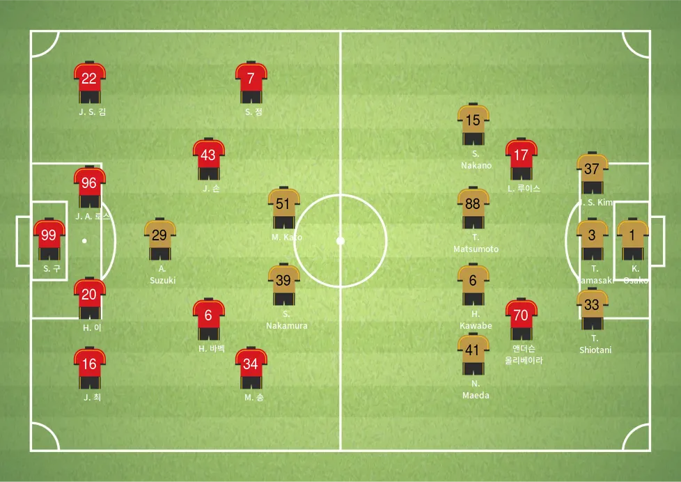 - 히로키 타나카: 필드 전체를 누비며 팀의 수비를 안정적으로 이끌고 있습니다.