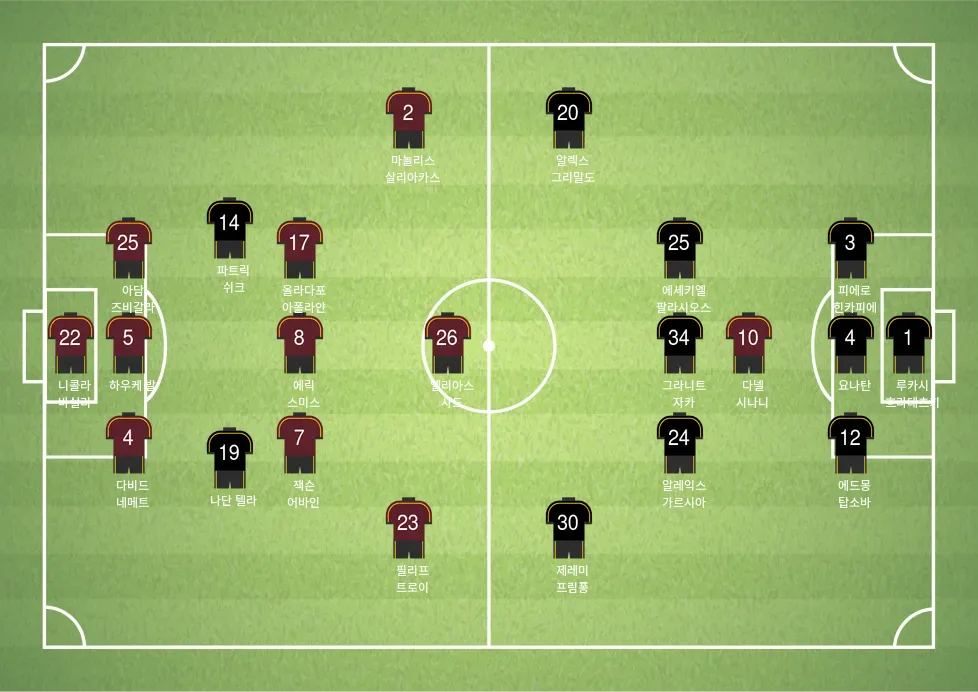 - 그라니트 자카 (중앙 미드필더): 경기 템포를 조절하고 패스를 통해 경기를 조율하는 중심