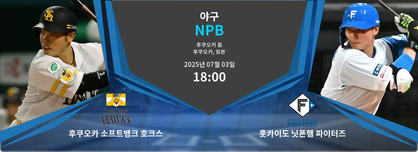 2025년 7월 3일 18:00 KST, 일본 후쿠오카의 후쿠오카 돔에서 소프트뱅크 호크스와 닛폰햄 파이터스가 맞붙습니다. 양 팀은 최근 5경기에서 각각 3승을 거두며 팽팽한 흐름을 보이고 있습니다. 홈에서 강한 소프트뱅크와 원정에서도 끈질긴 닛폰햄의 대결이 기대됩니다.