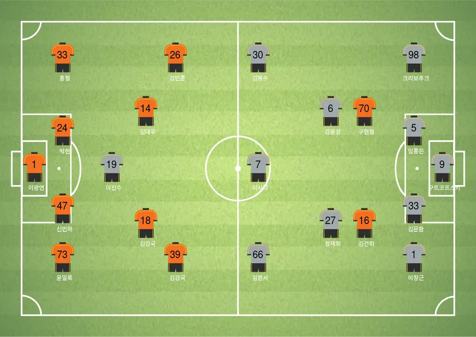 - 홍철 (RB): 경험 많은 수비수로 공격 가담도 적극적.