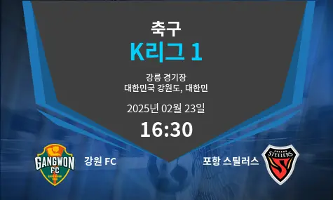 강원 FC와 포항 스틸러스가 강릉 경기장에서 맞대결을 펼친다. 두 팀 모두 시즌 첫 승을 노리는 상황으로, 강원 FC는 대구 FC에 1-2 패배, 포항 스틸러스는 대전 하나에 0-3 패배를 당했다. 최근 경기력을 고려했을 때, 이번 경기는 수비적인 운영이 중요한 접전이 될 가능성이 크다.