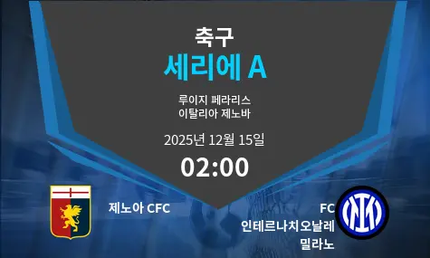 이 경기는 2025년 12월 15일에 Stadio Comunale Luigi Ferraris에서 열리며, 경기는 02:00에 시작될 예정입니다.