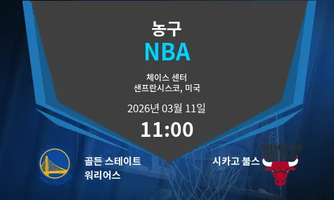 골든 스테이트 워리어스와 시카고 불스의 매치는 체이스 센터에서 열리며, 2026년 3월 11일 오전 11시에 시작될 예정입니다. 두 팀은 각각의 강력한 선수들과 전략을 바탕으로 한 치열한 경기를 펼칠 것입니다.