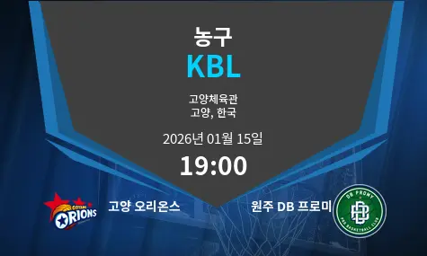 고양 오리온스 VS 원주 DB 프로미의 매치업 분석입니다. 이 경기는 고양체육관에서 2026년 1월 15일 19:00에 열릴 예정입니다. 양 팀은 각각의 강점을 통해 흥미로운 경기를 펼칠 것으로 예상됩니다.