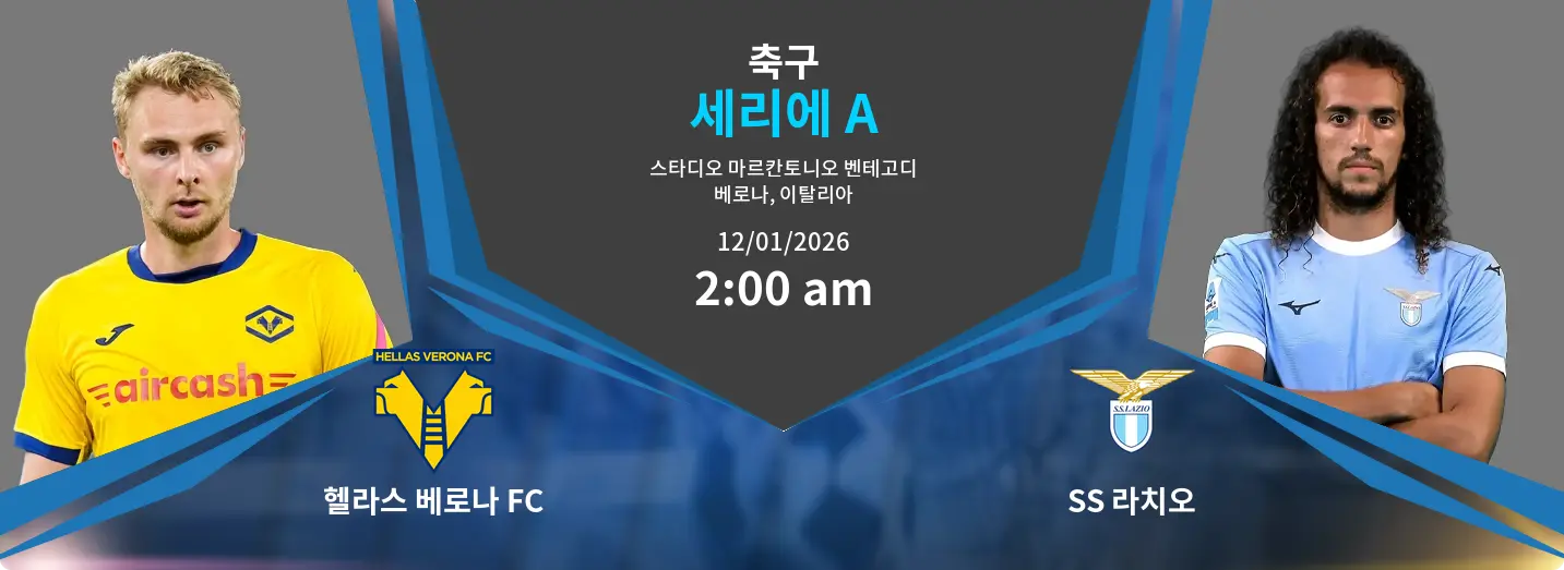 헬라스 베로나 FC와 SS 라치오의 경기는 Stadio Marc’Antonio Bentegodi에서 2026년 1월 12일 02:00에 개최될 예정입니다. 이번 대결은 두 팀의 현재 성향을 가늠할 수 있는 중요한 경기로 예상됩니다.