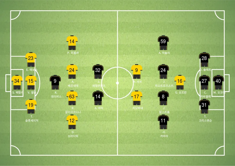 - 시모네 페를리 – 팀의 효과적인 미드필더로, 중원에서의 기술적인 플레이가 돋보입니다.