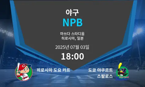 히로시마 도요 카프는 2025년 7월 3일 18:00 KST에 마쓰다 스타디움에서 도쿄 야쿠르트 스왈로즈와 맞대결을 펼칩니다. 히로시마는 센트럴 리그 2위로 상위권을 지키고 있으며, 최근 5경기에서 4승을 거두며 좋은 흐름을 이어가고 있습니다. 반면, 야쿠르트는 리그 최하위로 부진한 흐름을 보이고 있습니다.