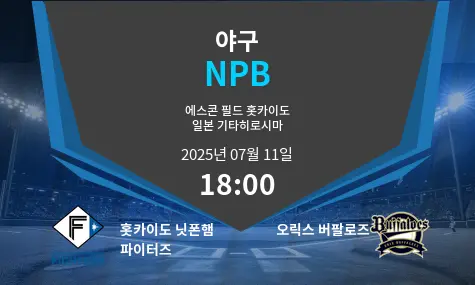홋카이도 닛폰햄 파이터즈와 오릭스 버팔로즈 간의 기대되는 경기는 2025년 7월 11일 오후 6시(KST), 일본 기타히로시마의 에스콘 필드 홋카이도에서 열릴 예정이다. 퍼시픽 리그 상위권에 위치한 두 팀 간의 맞대결로, 이번 경기는 포스트시즌 순위에 중요한 영향을 미칠 수 있다. 닛폰햄은 최근 상승세를 타고 있으며, 오릭스는 원정에서의 반등을 노리고 있다.