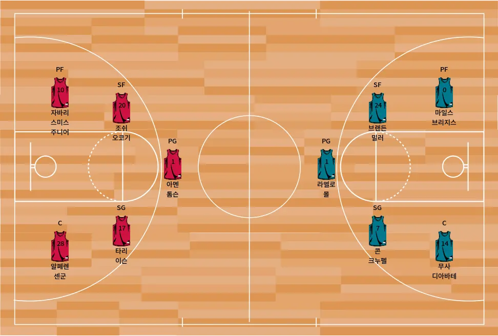 - 패트 코너틴은 3점 슛에서 팀의 득점 루트를 책임지고 있으며, 외곽에서 안정적인 플레이를 펼칩니다.