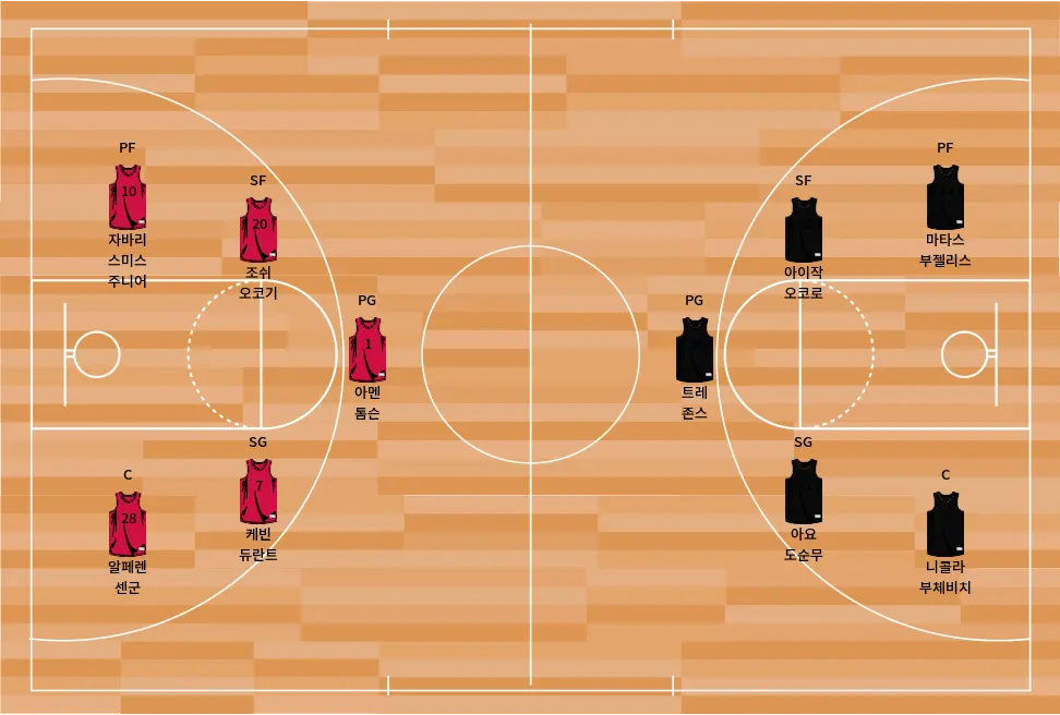 - 제일런 스미스: 젊음과 에너지를 앞세워 공격에서 활발한 움직임을 보여줍니다.