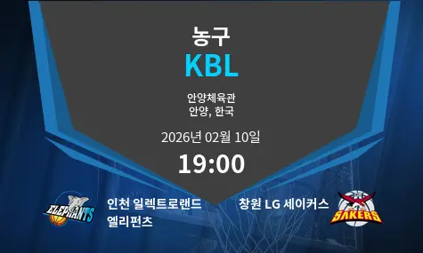 인천 일렉트로랜드 엘리펀츠와 창원 LG 세이커스의 경기는 2026년 2월 10일 19:00에 대구육상진흥센터에서 열릴 예정입니다. 두 팀은 이번 시즌 각자의 목표를 위해 치열한 경기를 펼칠 것으로 예상됩니다.