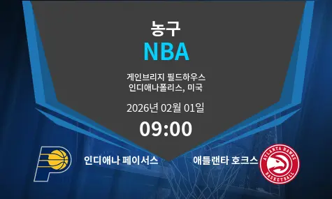 인디애나 페이서스와 애틀랜타 호크스의 대결은 2026년 2월 1일에 인디애나폴리스에 위치한 Gainbridge Fieldhouse에서 펼쳐집니다. 경기는 오전 09:00에 시작될 예정입니다.