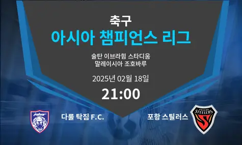 조호르 다룰 타짐(JDT)과 포항 스틸러스가 AFC 챔피언스리그에서 맞대결을 펼칩니다. JDT는 최근 시즌 동안 말레이시아 축구에서 압도적인 모습을 보이며 공격적인 경기 운영과 조직적인 수비를 유지하고 있습니다. 반면, 포항 스틸러스는 한국 축구의 전통적인 강호로, 강한 전방 압박과 기술적인 경기력을 앞세워 도전에 나섭니다.