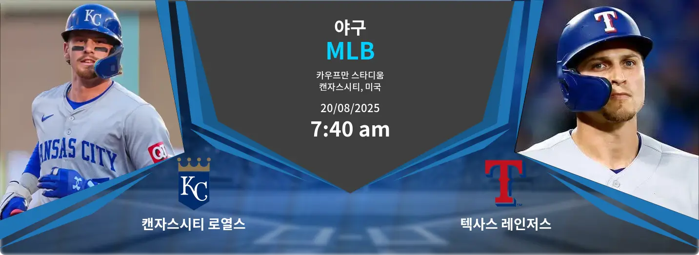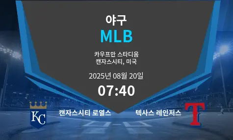 캔자스시티 로열스와 텍사스 레인저스가 카우프만 스타디움에서 맞붙습니다. 로열스는 최근 홈 경기에서 강세를 보이고 있으며, 레인저스는 핵심 선수들의 부상으로 일관성을 잃고 있습니다. 이번 경기는 투수진의 깊이와 득점 기회 활용 능력이 승부를 가를 전망입니다.