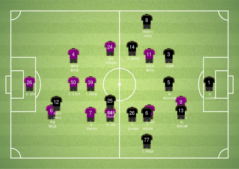 - 치아구 산타나 (#12, 공격수) – 우라와의 핵심 공격수로, 교토의 수비진을 뚫고 득점을 노릴 선수.