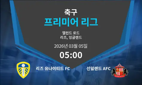 리즈 유나이티드 FC와 선덜랜드 AFC의 매치가 다가올 예정입니다. 2026년 3월 5일 엘런드 로드(경기장: Elland Road)에서 열릴 이 경기는 오전 5시에 킥오프될 예정입니다. 두 팀 모두 치열한 경기를 펼칠 것으로 보입니다.