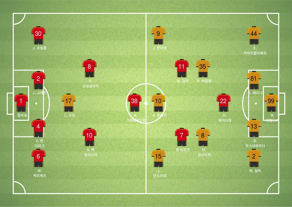 - 알리송: 세계 최정상급 골키퍼 중 한 명으로, 리버풀의 골문을 지킨다.