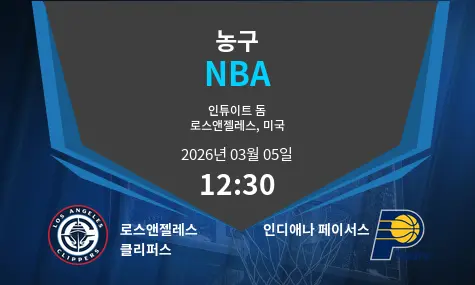 로스앤젤레스 클리퍼스와 인디애나 페이서스의 경기는 2026년 3월 5일에 인튜잇 돔에서 열리고, 경기 시작 시간은 12:30입니다. 두 팀 모두 이번 시즌에 꾸준한 성적을 유지하고 있으며, 핵심 선수들의 활약이 중요할 것입니다.