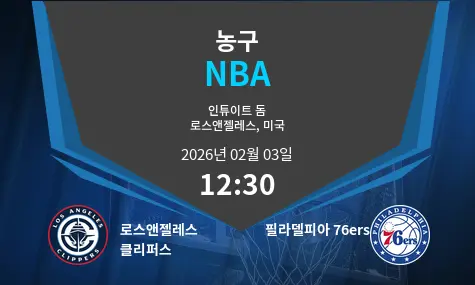 로스앤젤레스 클리퍼스와 필라델피아 76ers가 2026년 2월 3일 오후 12시 30분에 Intuit Dome에서 격돌합니다. 양 팀 모두 팬들이 기대하는 스타 플레이어들이 출전하여 치열한 승부가 예상됩니다. 클리퍼스는 강력한 공격력을 자랑하며, 76ers는 철벽 수비로 맞설 예정입니다.