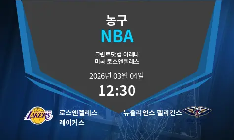 로스앤젤레스 레이커스와 뉴올리언스 펠리컨스의 경기는 2026년 3월 4일 12:30에 로스앤젤레스에 위치한 Crypto.com Arena에서 열릴 예정입니다. 양 팀은 시즌 후반부로 넘어가면서 플레이오프 진출을 확정짓기 위해 중요한 경기를 펼칠 것입니다. 레이커스는 홈 코트의 이점을 살리려 하겠고, 펠리컨스는 원정 경기에서 상승세를 잇고자 최선을 다할 것입니다.