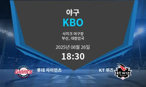 롯데 자이언츠는 2025년 8월 26일 오후 6시 30분, 대한민국 부산의 사직 야구장에서 KT 위즈와 맞붙습니다. 정규 시즌 후반부에 접어든 이 시점에서 양 팀 모두 기복 있는 경기력을 보이고 있으며, 홈팀 롯데는 최근 타선 부진을 만회하고자 하고, 원정팀 KT 위즈는 안정적인 경기 운영을 통해 승리를 노리고 있습니다. 양 팀 모두 경험 많은 선발 투수가 등판할 예정이라, 사직구장은 긴장감 있는 전략 중심의 경기가 예상됩니다.
