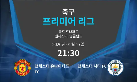 2026년 1월 17일 맨체스터 유나이티드 FC와 맨체스터 시티 FC가 올드 트래포드에서 맞대결을 펼칩니다. 킥오프는 21:30이며, 많은 팬들이 양 팀의 라이벌 매치를 기대하고 있습니다. 이번 경기는 두 팀의 전략과 선수들의 활약이 결정적인 변수가 될 것입니다.