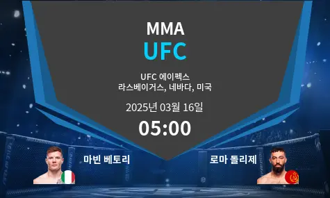 이 경기는 후반 라운드까지 이어질 가능성이 크다. 베토리는 지금까지 한 번도 KO 또는 서브미션 패배를 당한 적이 없으며, 돌리제 역시 최근 경기에서 강한 맷집을 보여줬다. 두 선수 모두 강한 체력을 바탕으로 싸우기 때문에, 오버 3.5라운드 예상이 유리한 선택이 될 것이다.
