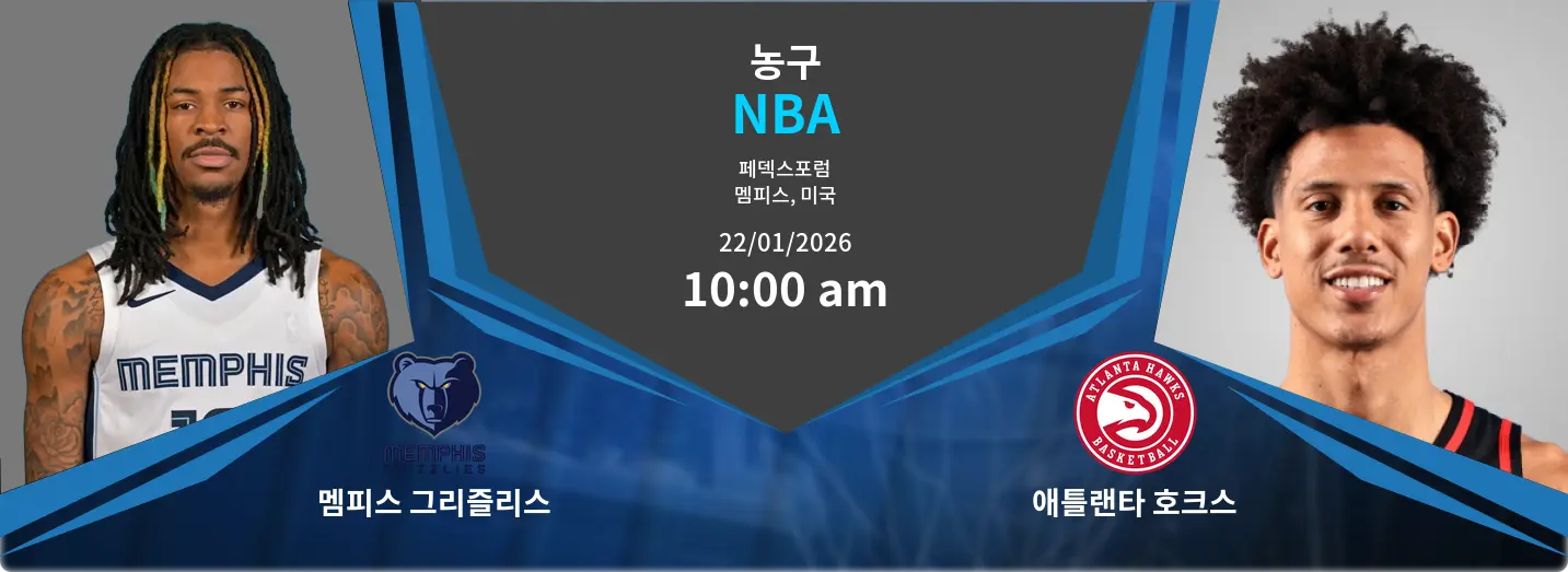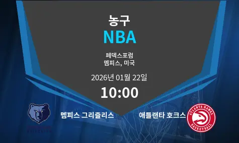 멤피스 그리즐리스와 애틀랜타 호크스의 맞대결은 2026년 1월 22일 10:00에 FedExForum에서 열립니다. 두 팀 모두 각자 특색 있는 플레이 스타일을 가지며, 흥미로운 대결을 펼칠 것으로 기대됩니다.