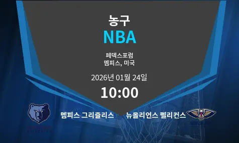 멤피스 그리즐리스와 뉴올리언스 펠리컨스 간의 매치업 분석을 시작하겠습니다. 이번 경기는 2026년 1월 24일 FedExForum에서 열리며, 경기는 오후 10시에 시작될 예정입니다.