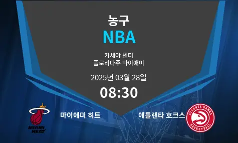 플로리다 마이애미의 카세야 센터에서 2025년 3월 28일, 오전 8시 30분 한국 시간에 마이애미 히트와 애틀랜타 호크스의 경기가 열립니다. 이번 동부 콘퍼런스 대결은 플레이오프 시드 확보를 위한 중요한 경기로, 양 팀 모두 포스트시즌 진출을 노리고 있습니다. 히트의 홈 코트 이점이 있지만, 양 팀 모두 심각한 부상으로 인해 경기 결과를 예측하기 어려운 상황입니다. 젊고 재능 있는 선수들의 활약과 양 팀의 핵심 선수들이 만들어낼 빠른 템포의 경기를 기대해볼 수 있습니다.