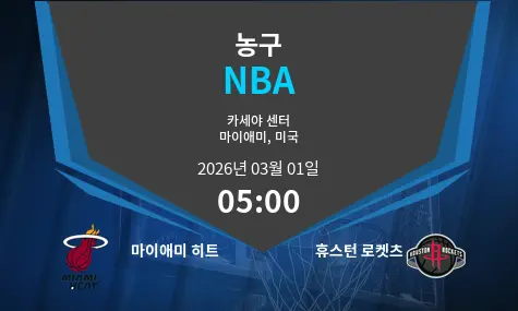 마이애미 히트와 휴스턴 로켓츠의 맞대결이 FTX 아레나에서 2026년 3월 1일 오전 5시에 열립니다. 두 팀은 저마다의 강점을 가지고 있으며, 흥미로운 경기가 기대됩니다.