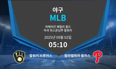 밀워키 브루어스는 2025년 9월 2일 오후 5시 10분(KST), 미국 위스콘신주 밀워키 아메리칸 패밀리 필드에서 필라델피아 필리스를 상대한다. 양 팀은 강력한 투수진과 타격 자원을 고루 갖추고 있어 치열한 승부가 예상된다.