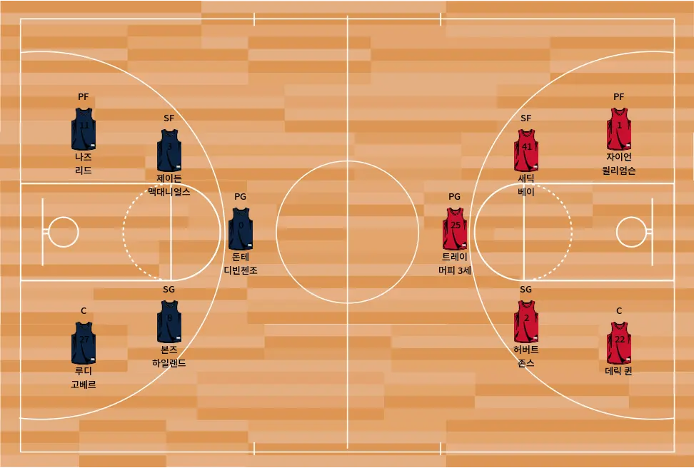 - 자이온 윌리엄슨 – 폭발적인 공격력으로 상대 수비를 무너뜨립니다.