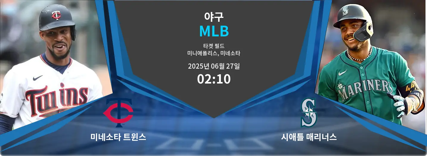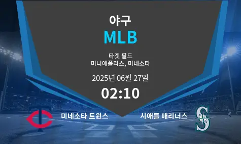 미네소타 트윈스는 2025년 6월 27일, 미국 미네소타주 미니애폴리스의 타겟 필드에서 시애틀 매리너스를 상대로 홈 경기를 치릅니다. 경기 시작 시간은 한국 시간 2:10 KST입니다. 두 팀 모두 시즌 중반 모멘텀 확보가 중요한 시점으로, 시애틀은 강한 장타력과 안정적인 불펜으로 약간의 우위를 점하고 있습니다. 반면 트윈스는 주요 선수 부상 공백을 극복해야 승산이 있습니다.