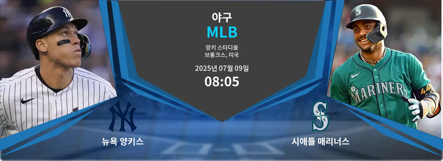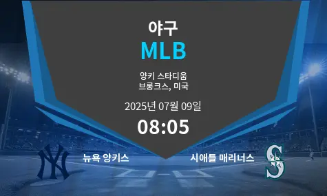 다가오는 뉴욕 양키스와 시애틀 매리너스의 경기는 2025년 7월 9일 오전 8시 5분(KST), 미국 브롱크스의 양키 스타디움에서 열릴 예정입니다. 양키스는 시즌 전체 성적에서 앞서고 있으나, 매리너스는 최근 피츠버그와의 시리즈에서 강한 모습을 보이며 상승세를 타고 있습니다.