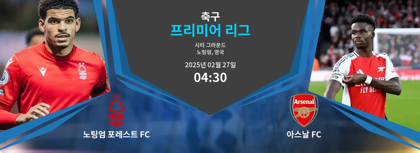 노팅엄 포레스트와 아스날이 2025년 2월 27일 영국 노팅엄, 시티 그라운드에서 중요한 프리미어리그 경기를 펼칩니다. 경기는 한국 시간(KST) 4:30에 시작됩니다. 양 팀 모두 이번 시즌 인상적인 모습을 보이며 리그 순위를 끌어올리기 위해 중요한 경기가 될 것입니다. 노팅엄 포레스트는 홈 이점을 활용하려 하고, 아스날은 챔피언스리그 진출권을 확보하기 위해 승리가 필요합니다.