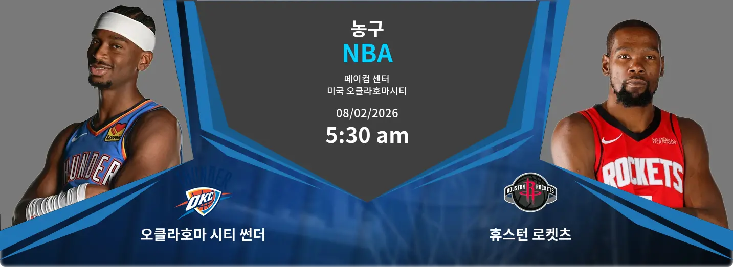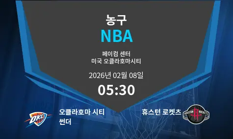 2026년 2월 8일, 오클라호마 시티 썬더와 휴스턴 로켓츠가 Paycom Center에서 맞대결을 펼칩니다. 경기 시작 시간은 오후 5시 30분입니다. 두 팀은 시즌 성적과 최근 경기력에서의 경쟁력을 바탕으로 치열한 접전을 펼칠 것으로 예상됩니다.