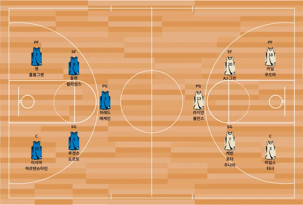 - 케빈 포터 주니어: 강력한 드리블 기술과 스피드를 갖춘 가드로써 팀의 공격을 이끌고 있습니다.
