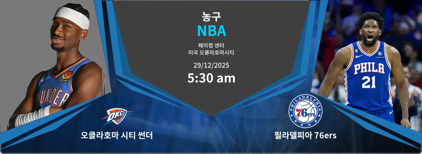 오클라호마 시티 썬더와 필라델피아 76ers의 경기가 Paycom Center에서 2025년 12월 29일, 05:30에 열립니다. 이번 맞대결은 두 팀 모두 시즌의 향방을 결정짓는 중요한 경기가 될 것입니다.