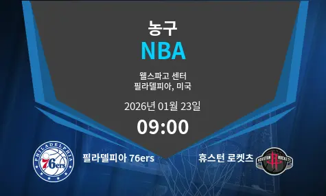 필라델피아 76ers와 휴스턴 로켓츠 간의 경기는 2026년 1월 23일 Xfinity Mobile Arena에서 열립니다. 경기 시작 시간은 오전 09:00입니다. 이 경기는 두 팀의 핵심 선수들이 어떻게 경기 흐름을 주도할지에 대한 기대가 높습니다. 필라델피아 76ers는 다재다능한 스타 선수들이 있고, 휴스턴 로켓츠는 젊고 열정적인 선수들로 구성되어 강력한 대결을 펼칠 것입니다.