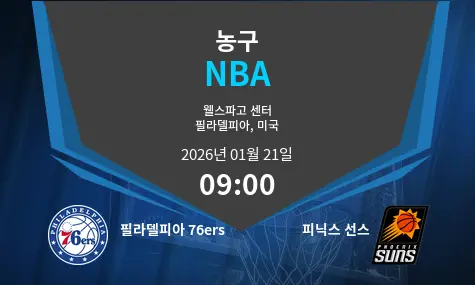 필라델피아 76ers와 피닉스 선스 간의 경기는 Xfinity Mobile Arena에서 열릴 예정입니다. 경기는 2026년 1월 21일, 현지 시간 09:00에 시작됩니다. 두 팀 모두 우수한 전력을 갖추고 있어 매우 흥미로운 경기가 될 것입니다.