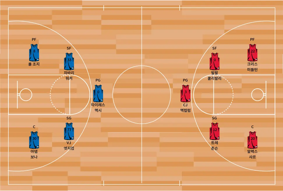 - 조엘 엠비드는 팀의 중심으로, 인사이드에서 강력한 득점력을 자랑합니다.