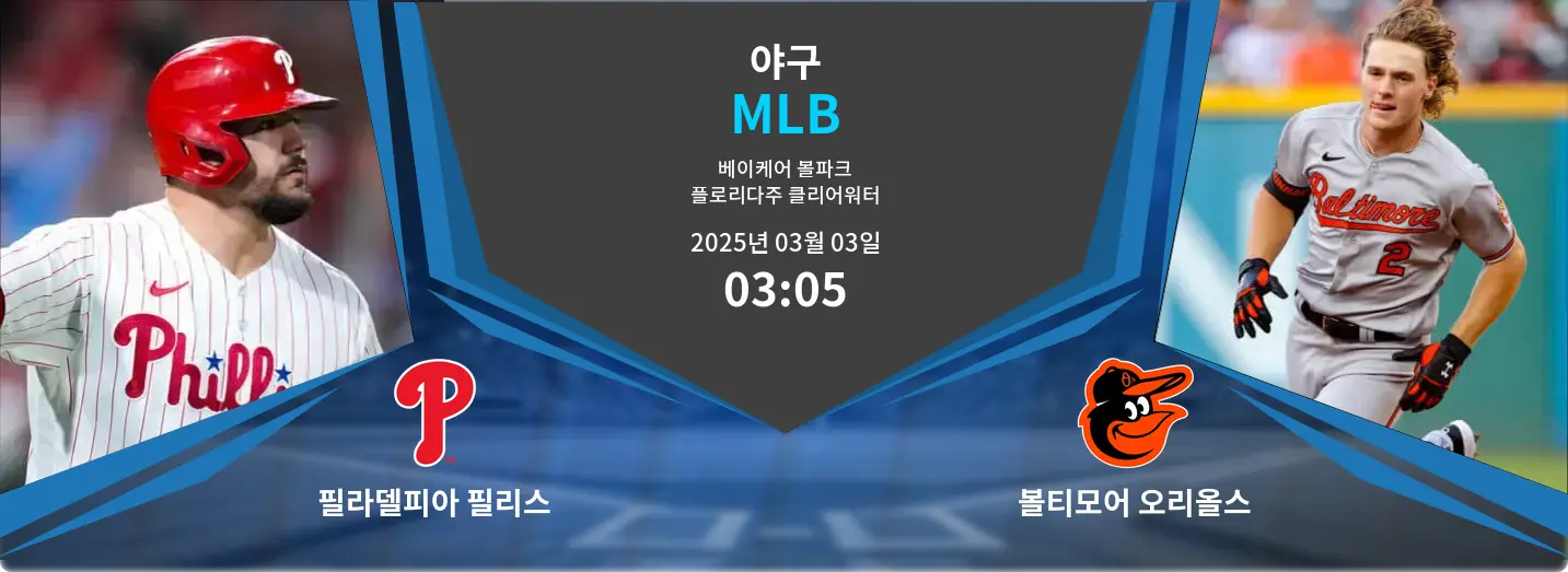 필라델피아 필리스는 2025년 3월 3일, 플로리다주 클리어워터에 위치한 베이케어 볼파크에서 볼티모어 오리올스와 스프링 트레이닝 경기를 치릅니다. 경기는 오후 3시 5분 KST에 시작될 예정입니다. 시즌 개막을 앞두고 치러지는 이번 경기는 각 팀이 라인업과 로테이션을 시험할 수 있는 중요한 기회입니다. 필리스는 경험이 풍부하고 강력한 타선을 앞세우며, 오리올스는 젊은 유망주들과 탄탄한 수비력을 바탕으로 활력을 불어넣고 있습니다.