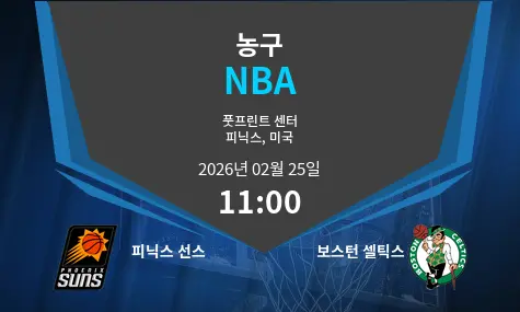 2026년 2월 25일, Mortgage Matchup Center에서 열리는 피닉스 선스와 보스턴 셀틱스의 경기는 팬들에게 큰 기대감을 주고 있습니다. 두 팀 모두 현재 리그에서 상위권에 위치하고 있으며, 11:00에 시작되는 이번 경기는 치열한 접전이 예상됩니다.