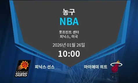 2026년 1월 26일, Mortgage Matchup Center에서 피닉스 선스와 마이애미 히트의 대결이 펼쳐집니다. 경기는 10:00에 시작되며, 두 팀 모두 이 경기를 통해 시즌 출발을 활기차게 하고자 합니다.