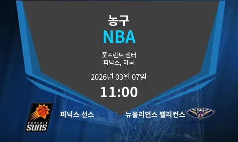 2026년 3월 7일 11:00, Mortgage Matchup Center에서 피닉스 선스와 뉴올리언스 펠리컨스가 맞붙습니다. 이번 경기는 두 팀의 전력과 경기력에서 흥미로운 대결이 될 것입니다.